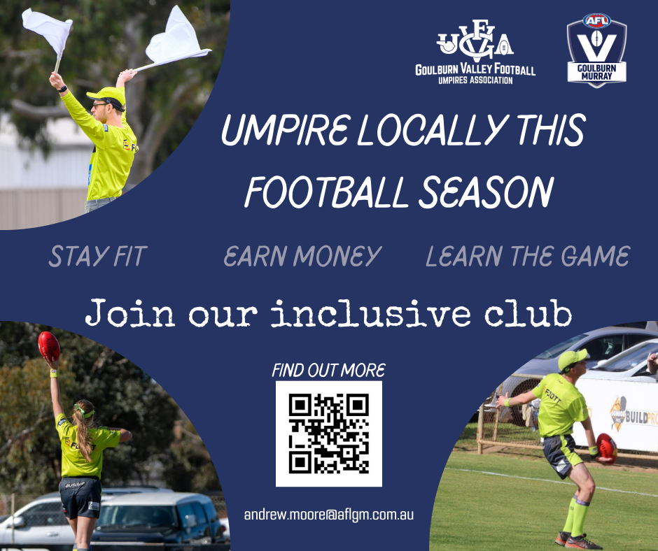 Stay involved in footy, and develop your skills with support from experienced coaches.Field, Boundary & Goal Umpires all welcome.